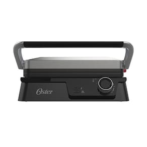 Chapa ampla que abre até 180 graus, chapa antiaderente, acabamentos em inox, indicadores luminosos, alavanca de ajuste de altura, Grip Dots, pés antiderrapantes, alça térmica e laterais recuadas.Termostato regulável