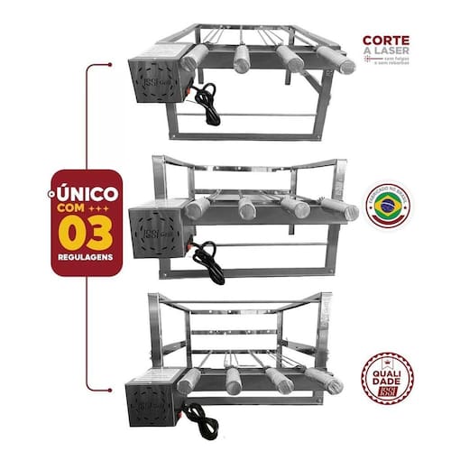 Churrasqueira Grill Giratório 4 Espetos de Inox Motor Removível Embutido Issi Grill