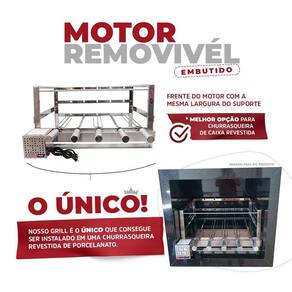 Churrasqueira Grill Giratório 5 Espetos de Inox Motor Removível Embutido Issi Grill