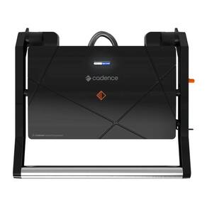 Grill elétrico multiuso Cadence com duas chapas antiaderentes, 1000W, ideal para grelhar e prensar alimentos, com abertura de até 180 graus.Termostato regulável