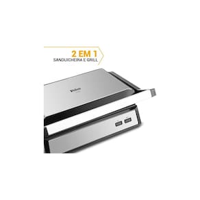 Seu grande diferencial é a abertura de 180, permitindo utilizar o grill como sanduicheira ou como chapa aberta, ampliando a área de preparo e facilitando o uso para diferentes tipos de alimentos.