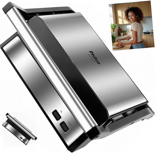 O Grill e Sanduicheira PGR21PI Maxx Clean da Philco é a escolha perfeita para quem busca praticidade e sabor na cozinha! Com | 1000W de potência |, ele é ideal para grelhar carne, peixe, frango, legumes e preparar deliciosos sanduíches quentes. Este produto 2 em 1 não só grelha, mas também tosta, oferecendo uma experiência completa para suas refeições.