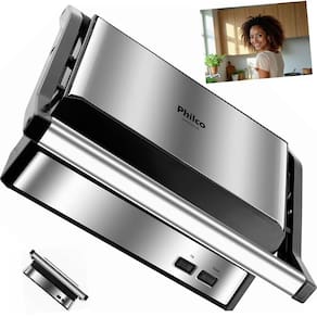 Grill Philco PGR21PI 1000W Grelha Sanduíches 2 em 1 Placas Onduladas Antiaderente Maxx Clean - 220V