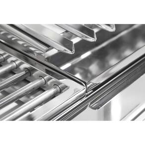 De fácil instalação (encaixe e use), seu sistema de elevação manual permite ajustar a altura do alimento em relação ao fogo.