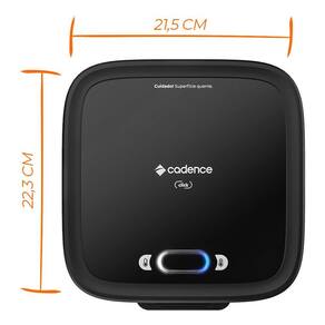 Chapas antiaderentes e mais profundas com 80% mais espaço. Chapas superior com grill e inferior lisa. Botão liga/desliga com LEDs indicadores. Pés antiderrapantes.Permite ejeção manual