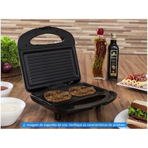 Grill/sanduicheira Mondial S-07 Retangular - 850W 220V Informações do produtoGrill/sanduicheira Mondial S-07 Retangular - 850W Um dos primeiros passos para cuidar da saúde é ter uma alimentação mais saudável, e para isto acontecer, precisamos recorrer à produtos que nos trazem praticidade e qualidade de vida. E sabendo disso a Mondial apresenta a sanduicheira/grill retangular S-07. Com potência de 850 Watts você pode grelhar diversos tipos de alimentos. E tudo isso sem uso de óleo, pois conta com chapa antiaderente que evita que os alimentos grudem. Prepare deliciosos pratos de forma prática e rápida com essa Sanduicheira/Grill da Mondial. Informações técnicasMarcaMondialReferênciaS 07.ModeloS-07Formato: RetangularPotência: 850 Watts.Cor: PretoPrepara: Sanduíches e grelhados.PlacaDispensa o uso de óleo: SimLuz indicadora Sim lâmpada piloto.Alça fria: SimProteção lateral: SimVoltagem: 220 VoltsTipo de pão: Fôrma.Benefícios: O grill e sanduicheira evita o acúmulo de resíduos, é de baixo consumo de energia e fácil limpeza.Antiaderente: Sim placas.Temperatura1.Base antiderrapanteSimQuantidade de sanduíches por vez: 2.Certificação do INMETROBRA 14/04024 REV. 2.Peso aproximadoPeso do produto com embalagem1,5 kg.Dimensões do produto Largura24,5 cm Altura10 cm Profundidade24 cmDimensões do produto com embalagem Largura25,9 cm Altura12,6 cmProfundidade26 cmFicha técnica- Voltagem: 220v