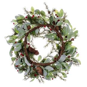 Coroa de folhas artificiais verdes Vickerman de 22 polegadas.