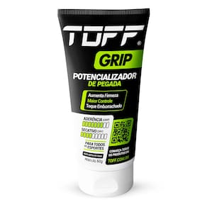 Benefícios do TOFF GRIP GEL Potencializador de Pegada: Aumenta a aderência para movimentos mais precisos e seguros.Toque Emborrachado: Proporciona uma sensação única de firmeza e controle.Fácil Aplicação e Remoção: Não mancha as roupas e pode ser removido com água e sabão.Seguro e Eficaz: Formulado com ingredientes de alta qualidade, é não tóxico e seguro para uso. Como Usar Lave bem as mãos e certifique-se de que estão secas e sem resíduos.Aplique uma pequena quantidade do TOFF GRIP GEL nas mãos e espalhe uniformemente.Aguarde 45 segundos para o toque emborrachado se formar.Para um grip mais acentuado, aplique uma segunda camada.Remova com água e sabão após o uso. Segurança e QualidadeNão oferece perigo à saúde se utilizado conforme as instruções. Em caso de contato com os olhos, lave imediatamente com água e consulte um médico. Armazene o produto em local fresco e ao abrigo da luz, em temperaturas abaixo de 40°C.