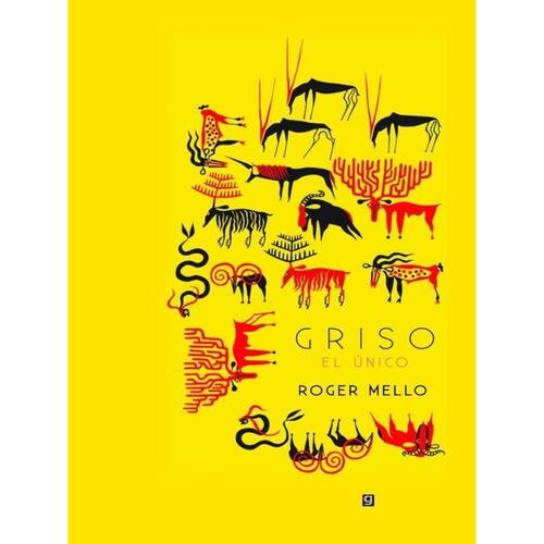 En Griso, el único, relato escrito e ilustrado por Roger Mello, el personaje, el último de su especie, recorre el mundo intentando encontrar otro como él, su igual, sin embargo su búsqueda es en vano. Un búfalo que se refrescaba en el agua resopló: “Ni aquí ni en el fin del mundo. Jamás he visto otro unicornio.” Los días no terminaban nunca. En los confines del mundo Griso llegó tan lejos que vio el abismo donde el sol se esconde. Este, rojo de verguenza, fue ocultándose hasta desaparecer. El personaje, en el transcurso de la historia, es retratado de diferentes formas y colores. Las ilustraciones están basadas en varios períodos de la Historia del Arle, entre ellos el arte germánico del siglo VII, el arte africano, la pintura rupestre, lo que permite ampliar, y muy bien, el repertorio artístico del lector. Marca: Não Informado