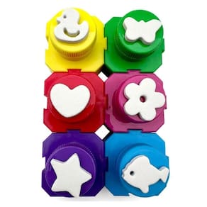 É um kit de 6 potes encaixáveis para a criança carimbar e pintar. São 6 cores de tinta variáveis e carimbos de EVA com estampas diferentes na tampa, sendo fácil de transportar e divertido de brincar, onde a criatividade é estimulada, ganhando formas, cores e descobertas.