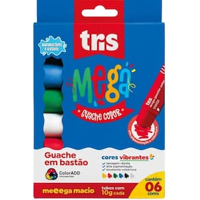 Guache em mega tons regulares - 6 unidades - tris Guache em mega tons regulares - 6 unidades - tris A tinta guache tris 6 cores é perfeita para liberar a criatividade de crianças e adultos de forma prática e divertida. Com cores vibrantes e aplicação direta no papel, permite projetos artísticos sem sujeira e de forma rápida. Este guache foi desenvolvido para oferecer cores intensas e cobertura uniforme, sem necessidade de água ou preparo, tornando a pintura mais prática e segura para uso escolar ou em casa. Aplicações: ideal para atividades escolares, artesanato, trabalhos manuais e qualquer projeto artístico que exija cores vivas e fáceis de aplicar. Vantagens: Prático: não requer preparo nem água seguro: formulado sem solventes nocivos, indicado para crianças Durável: cores intensas que não desbotam com o tempo portátil: ideal para uso em casa, escola ou atividades externas Educacional: estimula a criatividade e coordenação motora Ficha técnica: Marca: tris Modelo: guache Quantidade de cores: 6 Aplicação: direto no papel Itens inclusos: 1 conjunto com 6 bastões de tinta guache tris Indicação: indicado para crianças a partir de 3 anos e para qualquer pessoa que deseja criar com facilidade e cores vibrantes. Dica: mantenha a tampa fechada após o uso para conservar a textura e a vivacidade das cores.