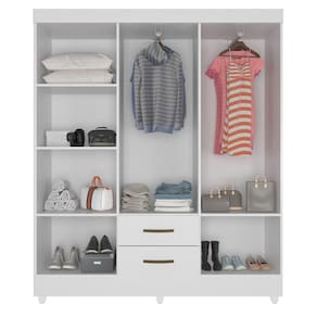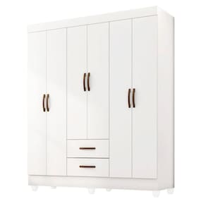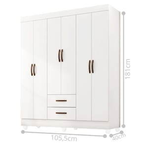 Feito em MDP. Contém 6 portas, 2 cabideiros em alumínio e 2 gavetas com corrediças metálicas, facilitando a abertura e deslizamento.