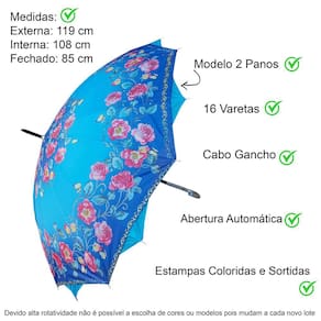 Reforçado, com 16 varetas, cabo em formato de gancho, abertura automática e fechamento manual.
