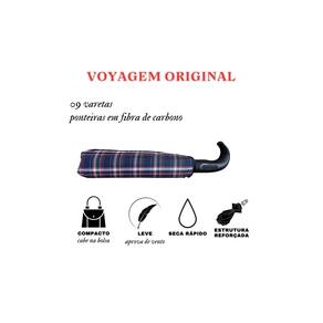 Modelo do guarda chuva portaria Voyagem sendo grande na sua abertura e pequeno para guardar.