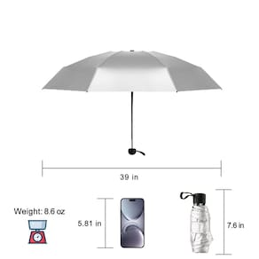 Viagem: como o nome sugere, os guarda-chuvas de viagem compactos são perfeitos para guardar em uma mala, mochila ou bolsa ao viajar. Seu pequeno tamanho dobrado permite que eles caibam em espaços apertados, garantindo que você esteja preparado para chuva inesperada ou sol intenso no seu destino. Deslocamento – Para viajantes diários caminhando para o trem, ônibus ou escritório, um guarda-chuva compacto escondido em uma pasta ou sacola pode ser um salva-vidas em dias chuvosos. Seu design leve e fácil de transportar não adiciona volume ou peso desnecessários. Eventos ao ar livre – Os guarda-chuvas compactos são ótimos para shows ao ar livre, jogos esportivos ou festivais onde o clima imprevisível é uma possibilidade. Seu tamanho pequeno facilita o armazenamento em uma mochila ou sacola até que seja necessário. Caminhadas e acampamentos: caminhantes e campistas podem se beneficiar da portabilidade de um guarda-chuva de viagem compacto e proteção UV. Eles podem ser utilizados para proteger da chuva ou do sol intenso durante a trilha ou em um acampamento. - Leve e portátil: os guarda-chuvas compactos são projetados para serem leves e fáceis de transportar, pesando apenas 243 g e medindo apenas 19,3 cm de comprimento ao dobrar - Resistência à água e proteção UV: um revestimento de teflon no dossel do guarda-chuva ajuda a repelir a água e evitar manchas, garantindo que o guarda-chuva seque rapidamente e permaneça em boas condições ao longo do tempo. Oferece proteção FPS 50+ protege você dos raios UV prejudiciais - Boa cobertura e armazenamento: quando totalmente aberto, o diâmetro do dossel é de 39 polegadas (99 cm), oferece cobertura adequada para proteger uma pessoa da chuva. Incluir uma capa macia evita que o guarda-chuva seja danificado por outros itens em uma bolsa ou bagagem - Maior durabilidade: os guarda-chuvas de 8 nervuras oferecem maior durabilidade e resistência ao vento em comparação com as opções de 6 nervuras. As nervuras de fibra de vidro e as hastes reforçadas ajudam a evitar que o guarda-chuva se inverta ou quebre durante condições de rajadas de vento - Uso diário: apesar de seu tamanho compacto, esses guarda-chuvas oferecem ampla cobertura contra chuva e sol. Muitas pessoas mantêm um guarda-chuva compacto em seu carro, gaveta de mesa ou bolsa para uso diário, garantindo que estejam sempre preparadas para mudar as condições climáticas