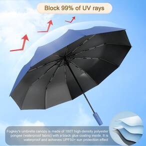 Fogkey Guarda-chuva de viagem portátil à prova de vento, à prova d'água, com bloqueio de UV, guarda-chuva compacto dobrável para sol e chuva, estrutura com nervuras duplas, guarda-chuva grande para