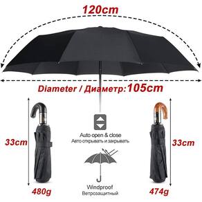 Material: estrutura de metal e pongee de poliéster com alça de couro Cor: preto Tamanho do pacote: 35 x 8 x 8 cm Peso do pacote: 0,60 kg Lista de embalagem: 1 x guarda-chuva dobrável O mecanismo de abertura e fechamento totalmente automático permite uma operação conveniente com uma mão, ideal para uso rápido ao entrar ou sair de carros e edifícios. A estrutura metálica reforçada de 10 nervuras aumenta a resistência ao vento e a durabilidade, ajudando o guarda-chuva a manter a estabilidade em ventos fortes e chuvas fortes. A alça curva de couro premium oferece aderência confortável e estilo comercial elegante, adequada para ocasiões formais e viagens diárias. O dossel de proteção UV com revestimento blackout bloqueia a luz solar e reduz o calor, tornando-o adequado para condições climáticas chuvosas e ensolaradas. O design compacto de três dobras cabe facilmente em mochilas, maletas ou malas, perfeito para viagens, uso no escritório e transporte diário.