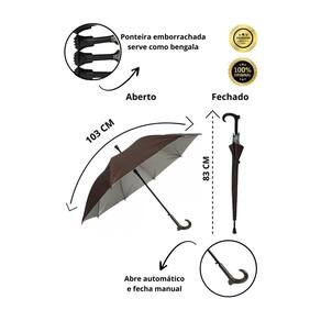 Guarda Chuva Extra Grande Automático Reforçado Voyagem O Guarda-chuva grande reforçado Voyagem, além de muito estiloso, é resistente. - Forte e resistente, capaz de aguentar chuvas fortes e tempestade com vento; - Grande com capacidade para duas pessoas ou mais usar sem se molhar; - Sua varão e varetas é em ferro galvanizado que são os ferros mais populares por ter durabilidade estendida e ótima resistência, além da proteção contra a corrosão de ferrugem; - Possui botão para abertura automática; - Você terá um produto Voyagem que segue padrões internacionais de qualidade. Especificações: - Marca: Voyagem. - Cabo: curvo. - Varão: ferro galvanizado. - Varetas: ferro galvanizado. - Quantidade de varetas: 8 varetas. - Dimensão aberto: 103 cm Diâmetro - Peso: 415g. Marca: Não Informado