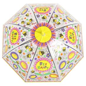 O Guarda-chuva Infantil Transparente Abelha Amarelo da marca Fazzoletti é resistente, durável e abre automático, basta apertar o botão Ele possui um design transparente que permite que as crianças vejam claramente enquanto se mantêm secas em dias chuvosos.