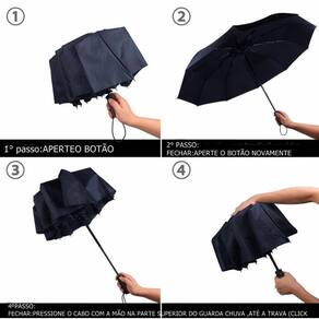 Abre e fecha possui um sistema de acionamento duplo automático,com um clique no botão ele abre e com outro clique no botão ele fecha,assim evitando o trabalho de abrir e fechar guarda chuva em locais de rápida ação,e também não se molhar todo. Também tem o tecido em pongee que não encharca e seca rapidissímo. 022/3a portaria dobravel abre e fecha Fechado: 38 cm Envergadura: 1,34 mt Diametro: 1,22 mt Peso: 550 gramas Botão automático abre e fecha. Tecido: pongee Armação e varetas de ferro galvanizado, varão sextavado galvanizado Atenção aos cuidados de conservação do seu produto