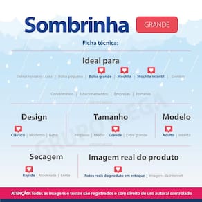 Sombrinha grande clássica masculina reforçada com 10 varetas masculina / feminina / adulto / ideal para deixar em bolsas e mochilas Características: Grande 3 dobras com 10 varetas de metal Abertura manual Fechamento manual Estilo clássico Com cordão para pendurar Resistente Seca rápido Unissex Adulto Imagem real do produto em O tom da cor pode variar conforme a calibração da tela do seu computador ou smartphone Especificações: Modelo: Sombrinha G12 Material: poliéster, aço, plástico Design: clássico Modelo: Adulto Quantidade: 1 Tamanho fechado: 28,5 cm Diâmetro aberto: 110 cm Peso: 371g Ideal para: Deixar em bolsas, mochilas, carro e casa Obrigado pela visita e boas compras ATENÇÃO Nossas imagens e textos são registrados e com direito de uso autoral controlado e reservado a essa loja e as lojas parceiras devidamente autorizadas em contrato. Marca: Não Informado