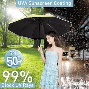 - ?Guarda-sol FPS 50+? O tecido de camada de revestimento prateado reflete o calor para resfriá-lo; FPS 50+ de alta classificação UV bloqueando 99,9% dos raios solares nocivos UVA e UVB do sol, protege sua pele ao sol. Os guarda-chuvas UV Bodyguard mantêm você fresco no sol e seguro na chuva.
