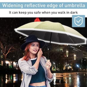 - ?Design seguro de patente de faixa refletiva? Este guarda-chuva à prova d'água atualizado é cercado por tiras refletivas, oferecendo alta visibilidade de 360° à noite. A faixa refletiva proporciona alta visibilidade durante condições de pouca luz e chuva para alertar carros e veículos, para segurança extra em condições de baixa visibilidade, importante para crianças, pedestres e passageiros, você estará mais seguro ao caminhar no escuro e na chuva.