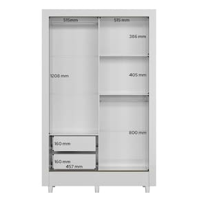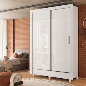 Possui 2 amplas gavetas com corrediças metálicas. Cabideiros em alumínio e prateleiras. Para a abertura das suas portas, conta com puxadores em ABS, com design moderno e bonito. O acabamento é em verniz brilhante, tudo feito dentro dos padrões de preservação do meio ambiente, com