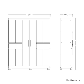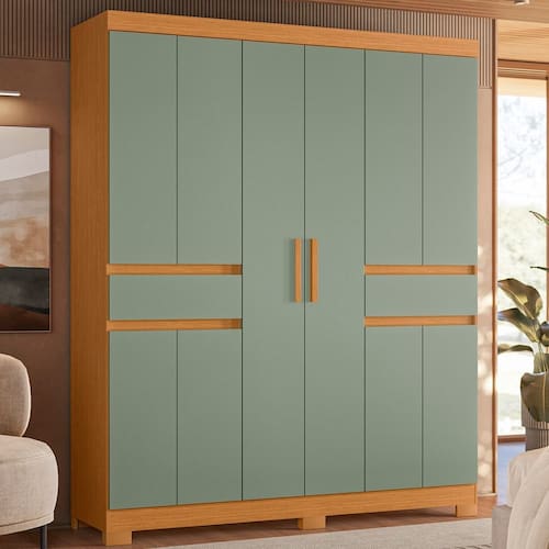 Móvel versátil com 2 gavetas de abertura suave graças às corrediças telescópicas. Puxadores em MDF revestido, cabideiros em alumínio duráveis e pés inclusos garantem praticidade e resistência. Uma opção ideal para manter tudo organizado com estilo e excelente acabamento. Acabamento da Prateleira: Pintura UV Escala de Brilho da Prateleira: Fosco Possui Cabideiros: Sim Acabamento da Gaveta: Pintura UV Escala de Brilho da Gaveta: Semi-Brilho Possui Organizador de Gaveta: Não Acabamento da Porta: Pintura UV Escala de Brilho da Porta: Fosco Material do Puxador da Porta: MDF Altura dos Pés: 5 cm Altura Máxima dos Pés: 5.0000 Ambiente Principal: Quarto codigo_ean: 7900288320476 Complexidade da Montagem: Alta: deve ser montado por um montador especializado Cor: Cinamomo / Sálvia Cor da Porta: Verde Cor do Produto: Cinamomo / Sálvia Cor Interna: Branco Escala de Brilho: Fosco Espessura da Estrutura (mm): 12 mm Espessura das Portas (mm): 15 mm Espessura das Prateleiras (mm): 12 mm Espessura do Fundo (mm): 3 mm Espessura do Fundo das Gavetas (mm): 3 mm Guarda-Roupa Suporta Até (kg): 71 kg Itens Inclusos: 1 Guarda-Roupa e Manual de Montagem Linha ou Coleção: Albatroz Manual de Montagem e Instalação: https://product-hub-prd.madeiramadeira.com.br/408387946/documents/587907ed-6e19-47f9-b5b2-795365cf1951337268467517697129912269.pdf Marca: Albatroz Móveis Material da Gaveta: MDP Material da Porta: MDP Material da Prateleira: MDP Material dos Pés: Plástico Material Principal: MDP modular: Não Necessita Montagem: Sim Nicho com Cabideiro: Sim Origem do Produto: Nacional Peso: 93,8 kg Peso Máximo por Gaveta: 5 kg Peso Máximo por Prateleira: 5 kg Porta Janelada: Não Possui Calceiros: Não Possui Capelinha: Não Possui Espaço para Vestidos Longos: Não Possui Espelho: Não Possui Espelho Interno: Não Possui Ganchos: Não Possui iluminação: Não Possui Nichos: Sim Possui Painel de TV: Não Possui Penteadeira: Não Possui Pés: 06 Possui Portas: Sim Possui Prateleiras: Sim Possui Sapateira: Não Produto Montado: Sim Quantidade de Cabideiros: 02 Cabideiros Quantidade de Gavetas: 02 Gavetas Quantidade de Prateleiras: 05 Prateleiras Recomendações de Uso, Manutenção e Limpeza: Limpar com flanela ou pano macio seco, não utilizar produtos abrasivos, desengordurantes, álcool ou solvente. não expor o produto diretamente à luz solar e à umidade. Sistema de Montagem: Parafusos, Cavilha e Minifix Suporta Até (kg): 71 kg Tipo de Corrediça da Gaveta: Metálica Telescópica Tipo de Dobradiça/Corrediça da Porta: Metálica Tipo de Gaveta: Externa Tipo de Guarda-Roupa: Casal Tipo de Puxador da Gaveta: Não Possui Tipo de Puxador da Porta: Externo