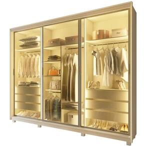 O Roupeiro Platinum 3P é a união perfeita entre inovação, design e funcionalidade. Com portas deslizantes em vidro reflecta, ele traz um toque moderno e sofisticado ao ambiente, além de seguir as principais tendências do mobiliário contemporâneo. O acabamento com requadro em alumínio e iluminação em LED de cor quente nas laterais e divisórias valoriza ainda mais o visual e facilita o uso no dia a dia. Produzido 100% em MDF, conta com seis gavetas com corrediças telescópicas e um interno funcional elegante cor Off White.