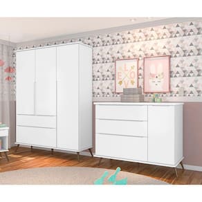 Guarda Roupa 10233 E Cômoda 10227 Infantil Melissa Branco Phoenix Baby