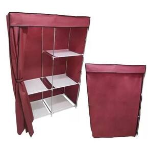 Guarda Roupa 105cm Estante Grande Cabideiro Arara Portatil Multiuso Sapatos Roupas Praia Vermelho