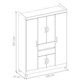 Feito em MDP, além de possuir 6 portas, 2 gavetas, 1 prateleira e cabideiro.
