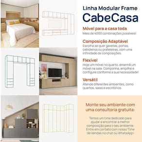 Largura do Conjunto: 45 cm Linha ou Coleção: Linha Frame Marca: CabeCasa MadeiraMadeira Material Principal: MDP Necessita Montagem: Sim Origem do Produto: Nacional Possui Rodízio: Não Recomendações de Uso, Manutenção e Limpeza: Utilize um pano macio umedecido com água e sabão neutro, seguido de pano seco. Não utilize produtos químicos ou abrasivos para limpeza, pois estes danificam o revestimento do móvel. Sapatas Niveladoras: Não Sistema de Montagem: Cavilha, Parafuso, Minifix e prego