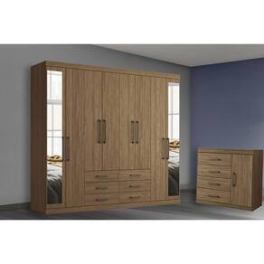 Guarda Roupa Casal 8 Portas (2 c/ Espelho) e 6 Gavetas Master 8.6 Jatobá - Santos Andirá