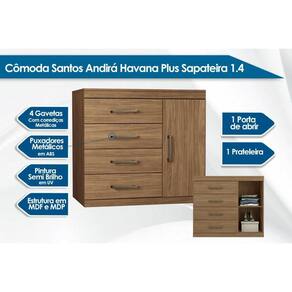 Cômoda de Quarto 1.4 Plus c/ 1 Porta e 4 Gavetas Atacama-Jatobá - Santos Andirá