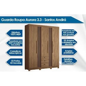 Estrutura 100% MDP, Cabideiros Metálicos, Dobradiças Metálicas, Corrediças Telescópicas, Pés em ABS/PVC (Guarda Roupa), Rodízios (Cômoda), Fundo da Gaveta em HDF (Guarda Roupa)Vendido e entregue por WebContinental