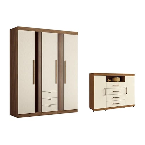 Guarda Roupa 2 Peças (1GuardaRoupa+1Cômoda) QC260 Jatoba/Areia - Santos Andirá