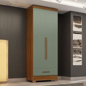 O Módulo Smart Plus, é uma solução moderna e funcional para otimizar espaços. Suas laterais, portas, rodapés e gaveta são feitas em MDP de 15mm de alta qualidade. O fundo do roupeiro e da gaveta tem 3mm de espessura. Possui corrediças telescópicas suaves, interior na cor do produto, puxador em MDF e cabideiro em alumínio. Oferece quatro possibilidades de montagem interna elencadas em seu manual de montagem de fácil entendimento. Ideal para quem busca praticidade, estilo e organização em um único móvel. Acabamento da Prateleira: Pintura UV Escala de Brilho da Prateleira: Fosco Possui Cabideiros: Sim Acabamento da Gaveta: Pintura UV Material do Puxador da Gaveta: MDF Possui Organizador de Gaveta: Não Acabamento da Porta: Pintura UV Escala de Brilho da Porta: Fosco Material do Puxador da Porta: MDF Altura dos Pés: 5,5 cm Altura Máxima dos Pés: 5.5000 Ambiente Principal: Quarto codigo_ean: 7900288111944 Complexidade da Montagem: Média: pode ser montado por mais de uma pessoa e/ou necessite de maior conhecimento para montagem Cor: Cinamomo / Verde Cor do Produto: Cinamomo / Verde Cor do Puxador: Marrom Escala de Brilho: Fosco Espessura da Estrutura (mm): 15 mm Espessura das Portas (mm): 15 mm Espessura das Prateleiras (mm): 12 mm Espessura do Fundo (mm): 3 mm Espessura do Fundo das Gavetas (mm): 3 mm Gaveta com Chave: Não Itens Inclusos: 1 Módulo Guarda Roupa, Kit Ferragens e Manual de Montagem Linha ou Coleção: Espresso Móveis Manual de Montagem e Instalação: https://product-hub-prd.madeiramadeira.com.br/981509/documents/fc01d885-0a44-43b2-a54a-3fd670dc3f5fontagemgr2123cod3003829932.pdf Marca: Espresso Móveis Material da Gaveta: MDP Material da Porta: MDP Material da Prateleira: MDP Material dos Pés: Plástico Material Principal: MDP modular: Sim Montagem Flex: Sim, interior do produto pode ser montado da forma que o cliente desejar, contendo 4 opções elencadas no manual de montagem. Necessita Montagem: Sim O Módulo Pode ser utilizado individualmente: Sim Origem do Produto: Nacional Peso: 57,75 kg Peso Máximo por Gaveta: 5 kg Peso Máximo por Prateleira: 7 kg Possui Calceiros: Não Possui Espelho: Não Possui Pés: 04 Possui Portas: Sim Possui Prateleiras: Sim Produto Montado: Sim Quantidade de Gavetas: 01 Gaveta Recomendações de Uso, Manutenção e Limpeza: pano levemente úmido Sistema de Montagem: parafusos, cavilhas e cantoneiras Suporta Até (kg): 10 kg Tipo de Corrediça da Gaveta: Metálica Telescópica Tipo de Dobradiça/Corrediça da Porta: Telescópica Tipo de Gaveta: Externa Tipo de Guarda-Roupa: Solteiro Tipo de Puxador da Gaveta: Externo Tipo de Puxador da Porta: Externo