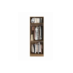 Para quem sempre sonhou com um quarto planejado, o Modulado Adapt da Kappesberg é a escolha ideal. Produzido em MDP, material de alta qualidade, o Roupeiro 2 portas N555 é ideal para quem busca por uma melhor otimização do espaço. Espaçoso e muito versátil, ele garante ainda mais beleza e funcionalidade. Com duas portas e uma divisão interna entre cabideiros e uma prateleira, ele é ideal para guardar peças de roupa em cabides, como casacos, calças e vestidos sem amassar, além da possibilidade de organizar cobertas e travesseiros a parte superior, deixando seu espaço sempre organizado. E com pintura touch de sete camadas e acabamento fosco na cor nogueira, além de combinar facilmente com todos os ambientes, garante a sensação de aconchego e conforto, trazendo elementos da natureza para dentro da sua casa. Os destaques ficam por conta do sistema de amortecimento nas portas, proporcionando um fechamento suave e sem ruídos e do puxador em MDF, completando os diferenciais do produto e deixando você com o quarto que sempre sonhou. Renove seu quarto com toda a qualidade e beleza que o Modulado Adapt da Kappesberg oferece e aproveite cada momento.