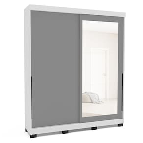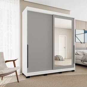 Guarda-roupa 2 Portas Correr com Espelho Madrid Cinza/Branco