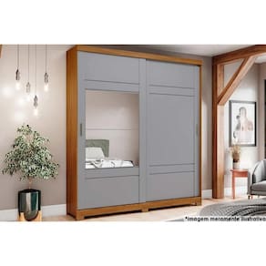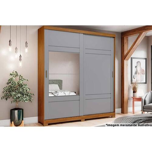 Guarda Roupa Casal 2 Portas de Correr (1 c/ Espelho) e 3 Gavetas c/ Pés Verg Nature/Cinza - Henn
