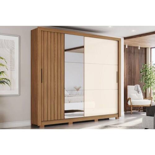 Guarda Roupa 2 Portas De Correr (1 C/ Espelho) E 4 Gavetas C/ Pés Vasti Nature/off White - Henn