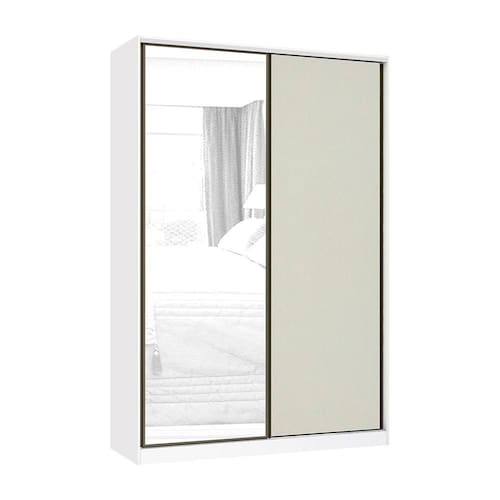 Guarda Roupa 2 Portas de Correr 3 Gavetas 159cm com Espelho Prime Luciane Móveis - Bege Claro