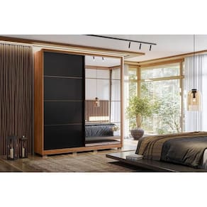 Guarda Roupa Solteiro 2 Portas de Correr 3 Gavetas c/ Espelho e Pés Belga Amêndola/Amêndola ou Grafito - Demóbile Marca: Demóbile