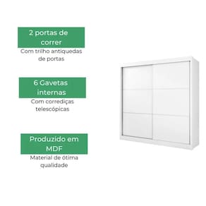 Guarda Roupa 2 Portas de Correr 6 Gavetas Cancun D'Doro Branco
