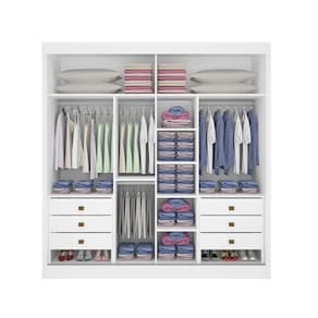 - Itens Inclusos: 1 Guarda-roupas casal, Kit Ferragens e Manual de Montagem;