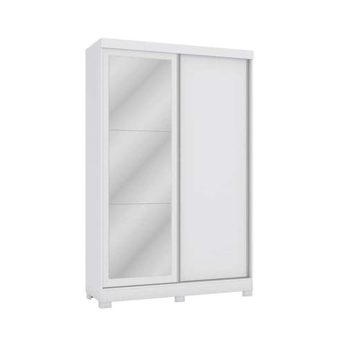 Guarda Roupa Solteiro 2 Portas de Correr e 2 Gavetas c/Espelho e Pés N571 Branco - Kappesberg