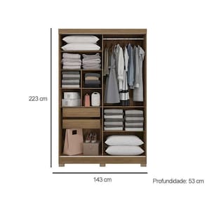 Dimensões(Cm): Comprimento(Profundidade): 53cm x Largura: 143cm x Altura: 223cm