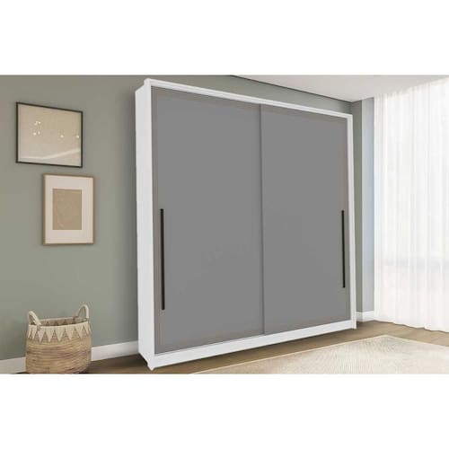 Guarda Roupa Casal 2 Portas de Correr e 2 Gavetas Valência Branco/Cinza - Politorno